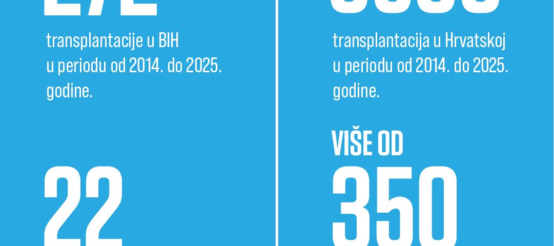 Statistički podaci za period od 2014. do 2025. godine ukazuju na drastičnu razliku u broju transplantacija između Federacije BiH i susjedne Hrvatske. Dok je kod nas u tom periodu obavljeno tek 272 zahvata, Hrvatska bilježi više od 3500 uspješnih transplantacija. Najveći izazov leži u broju donora na milijun stanovnika, gdje BiH ima tek 2 donora, dok Hrvatska sa 35 donora prednjači kao europski lider.