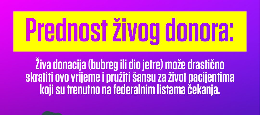 Živa donacija predstavlja ključnu nadu za pacijente na federalnim listama čekanja, jer donor može darovati bubreg ili dio jetre. Trenutno u Federaciji BiH od pacijenata koji čekaju transplantacije, čak 69,2% pacijenata čeka na transplantaciju bubrega, dok 11,7% njih treba transplantaciju jetre.